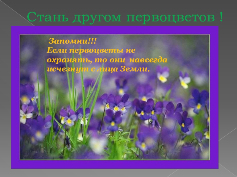 Стань другом первоцветов ! Запомни!!!Если первоцветы не охранять, то они навсегда исчезнут с лица Земли.