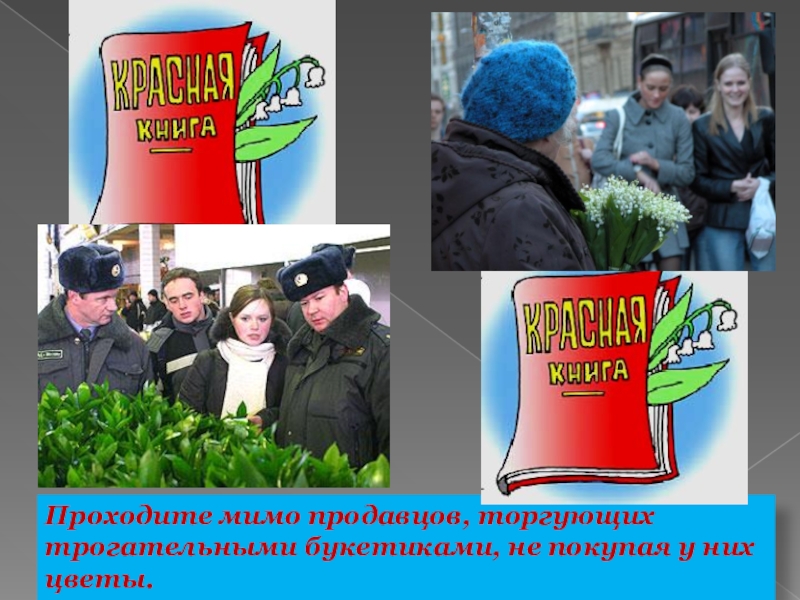 Слайд 17Проходите мимо продавцов, торгующих трогательными букетиками, не покупая у них цветы.