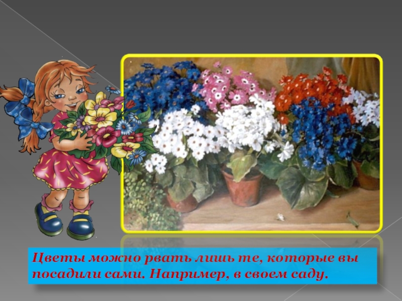 Слайд 18Цветы можно рвать лишь те, которые вы посадили сами. Например, в