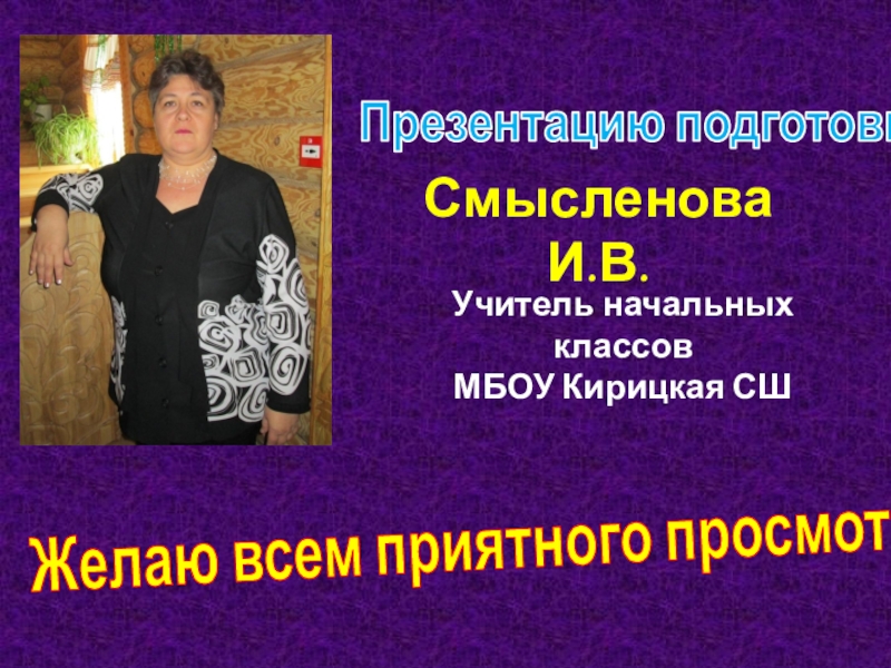 Презентацию подготовилаСмысленова И.В.Учитель начальных классовМБОУ Кирицкая СШ Желаю всем приятного просмотра!!!