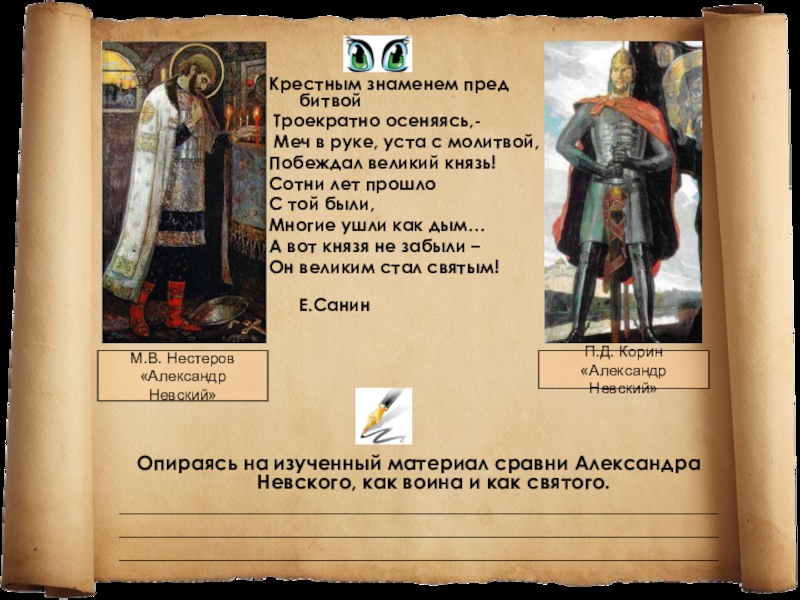 Опираясь на изученный материал сравни Александра Невского, как воина и как святого.