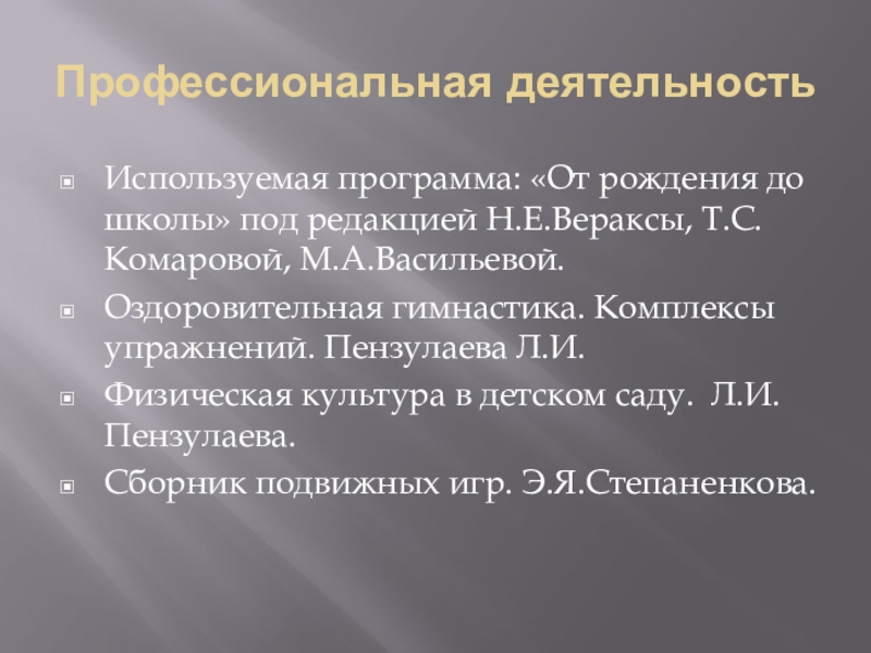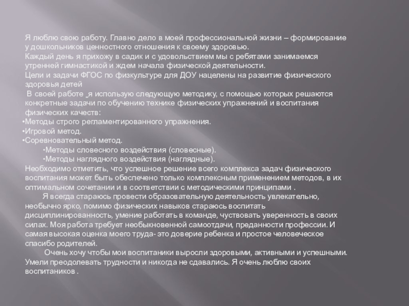 Слайд 20Целью своей профессиональной деятельности считаю повышение качества физического воспитания дошкольников. Поэтому наиболее