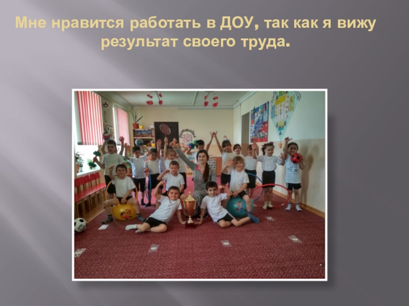 Слайд 23Мне нравится работать в ДОУ, так как я вижу результат своего