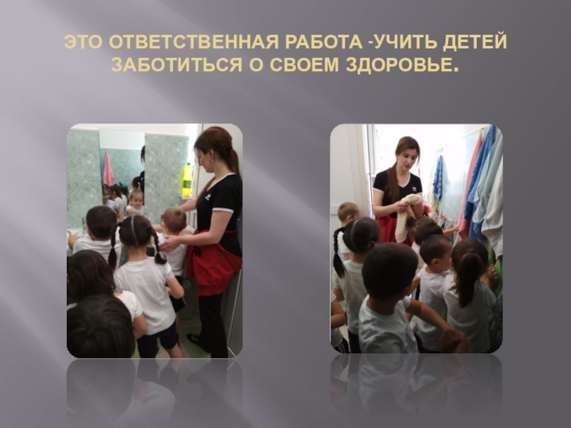 Слайд 7ЭТО ОТВЕТСТВЕННАЯ РАБОТА -УЧИТЬ ДЕТЕЙ ЗАБОТИТЬСЯ О СВОЕМ ЗДОРОВЬЕ.