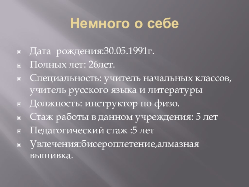 Слайд 3Немного о себе