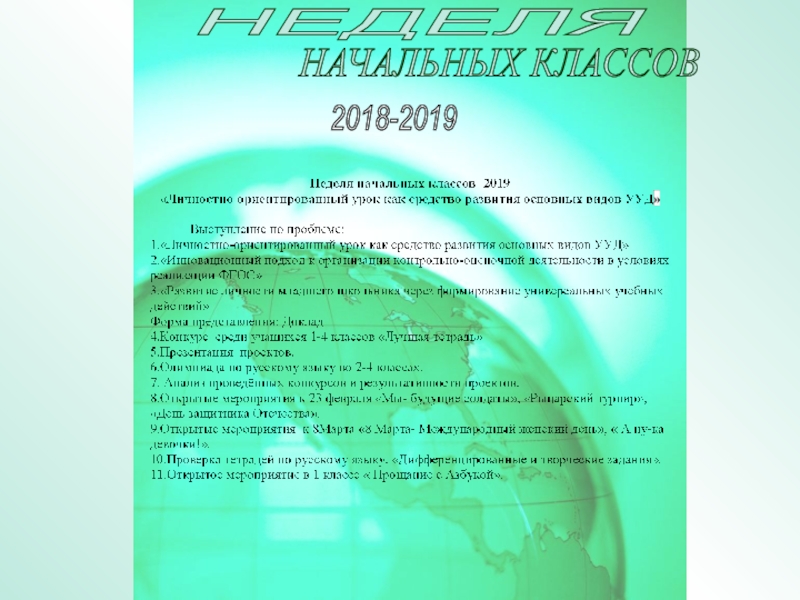 8.Адаптация первоклассников 9.Школа будущего первоклассника 10.Анализ работы МО, самоанализ деятельности учителей.