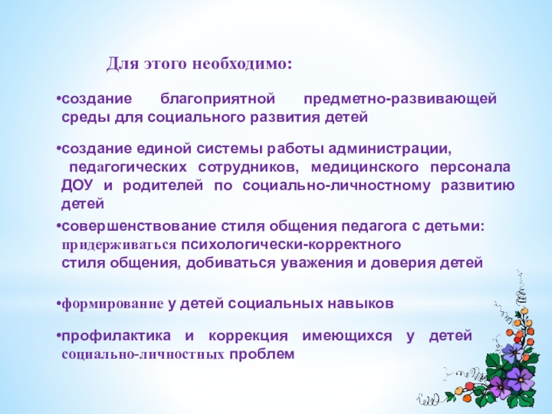 создание благоприятной предметно-развивающей среды для социального развития детей
