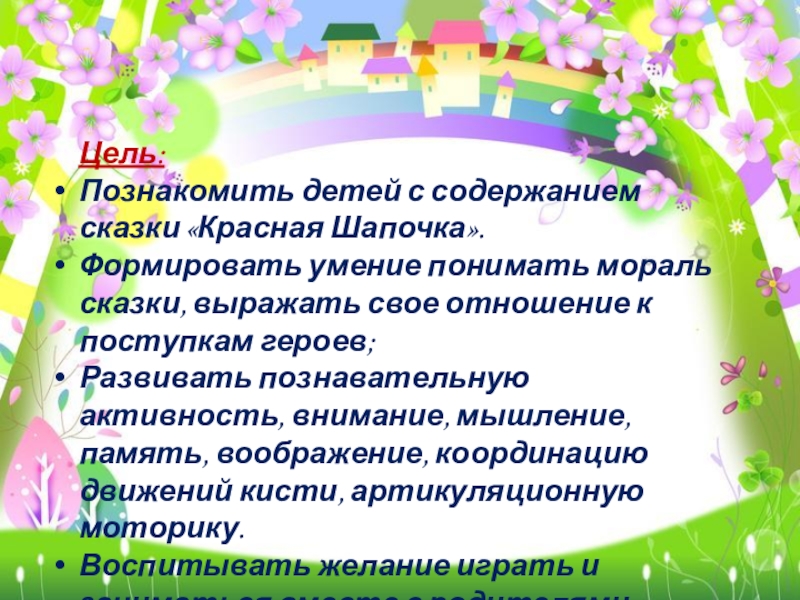 Познакомить детей с содержанием сказки «Красная Шапочка».