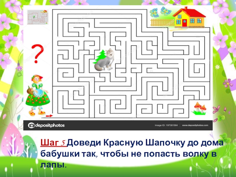 Слайд 11Шаг 5 Доведи Красную Шапочку до дома бабушки так, чтобы не