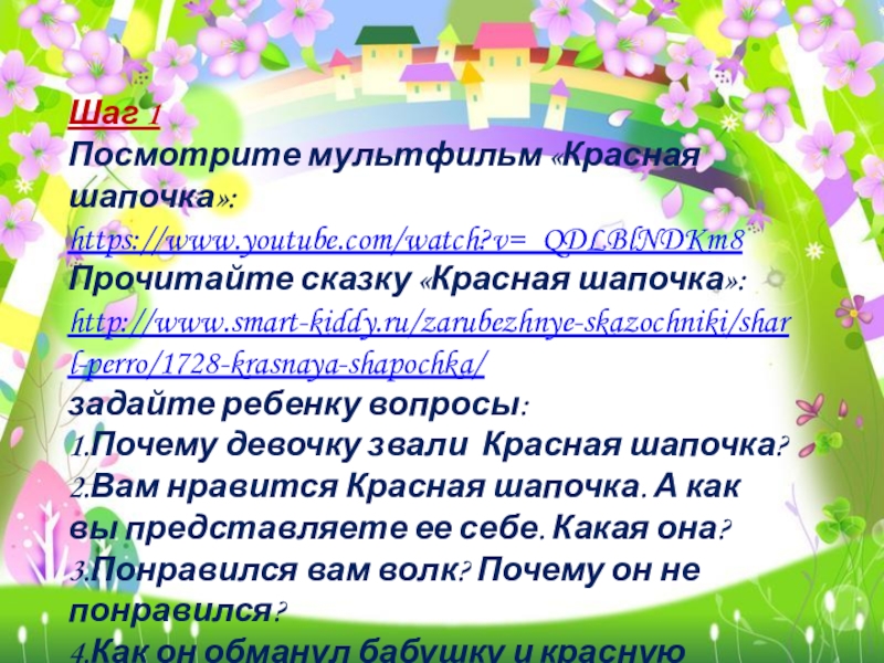 со сказкой Ш. Перро «Красная Шапочка». Предлагаем вам вместе со своим ребенком на некоторое время окунуться в мир детства и сказки.