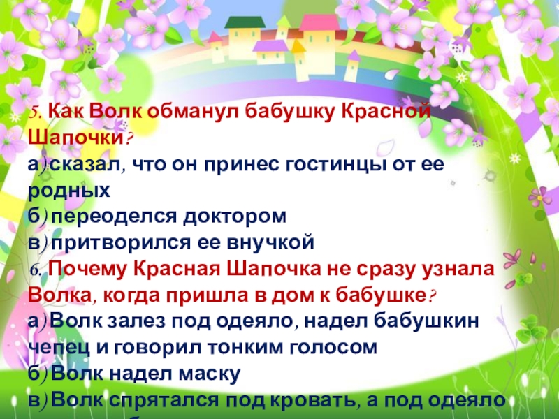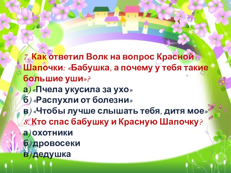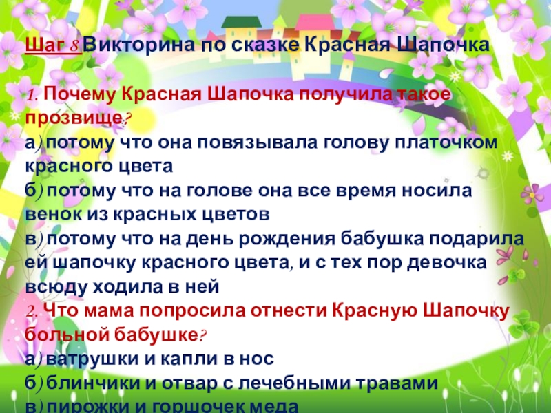 Слайд 14Шаг 8 Викторина по сказке Красная Шапочка
