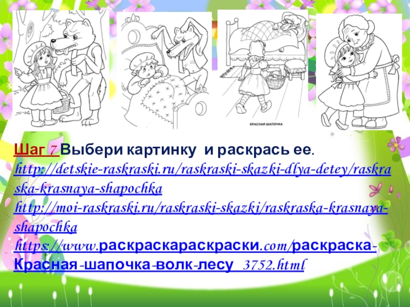 Слайд 13Шаг 7 Выбери картинку и раскрась ее.