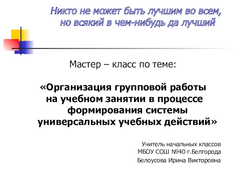 Учитель начальных классов МБОУ СОШ №40 г.Белгорода