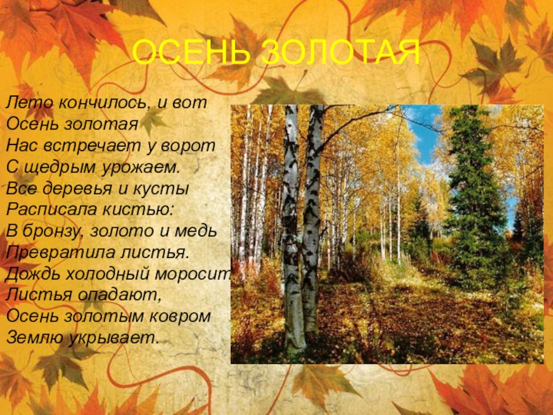 Слайд 14ОСЕНЬ ЗОЛОТАЯ