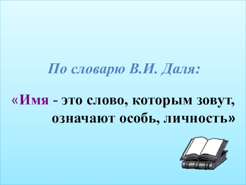 Слайд 2 По словарю В.И. Даля: «Имя - это слово, которым