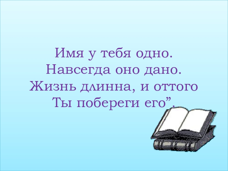 Слайд 8Имя у тебя одно. Навсегда оно дано. Жизнь длинна, и оттого Ты побереги его”.