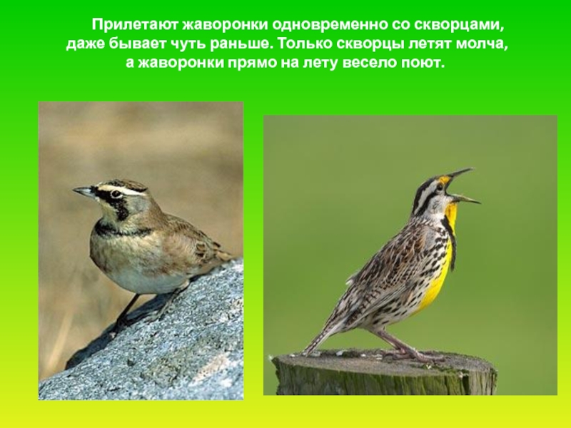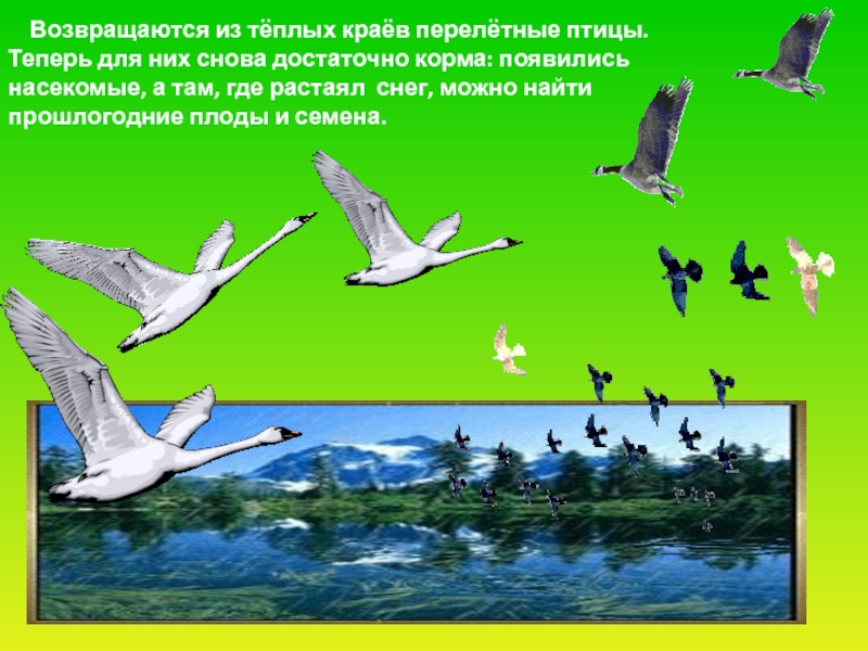 Слайд 10 Возвращаются из тёплых краёв перелётные птицы.