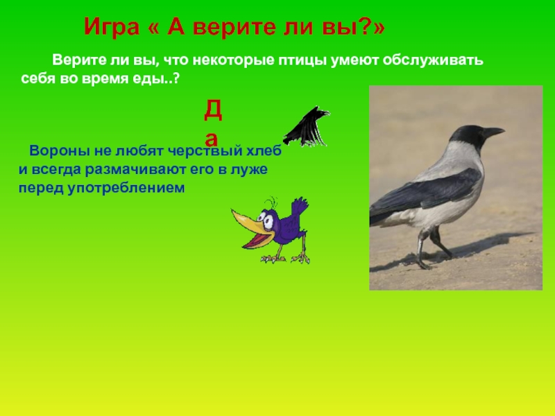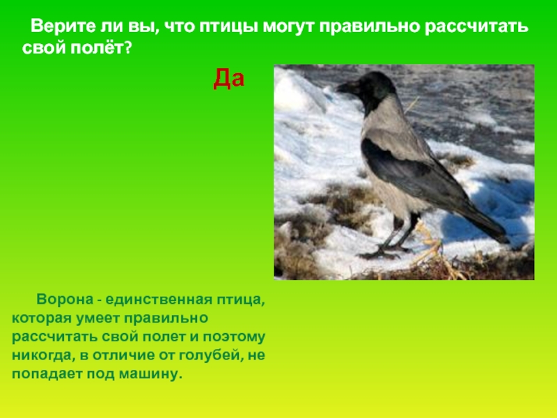 Слайд 54 Ворона - единственная птица, которая умеет правильно