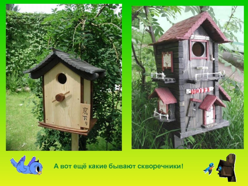Слайд 17А вот ещё какие бывают скворечники!