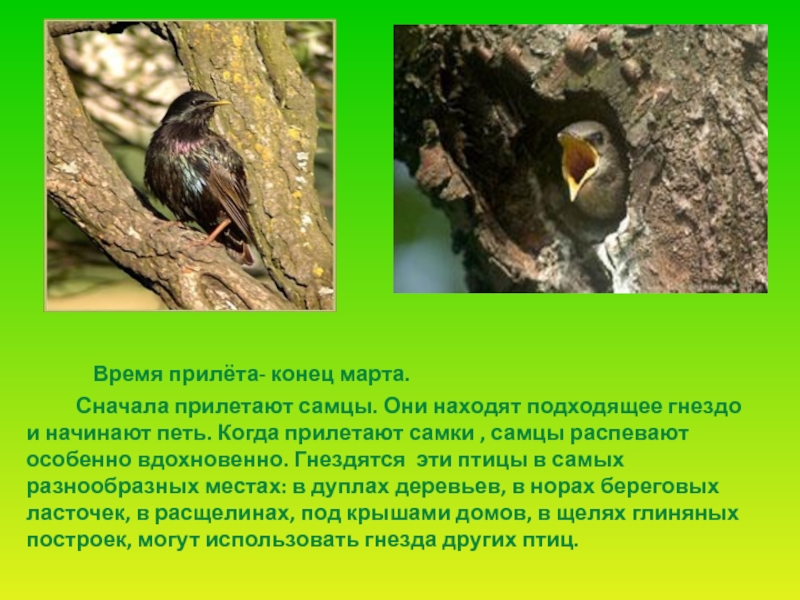 Слайд 15 Сначала прилетают самцы. Они находят подходящее