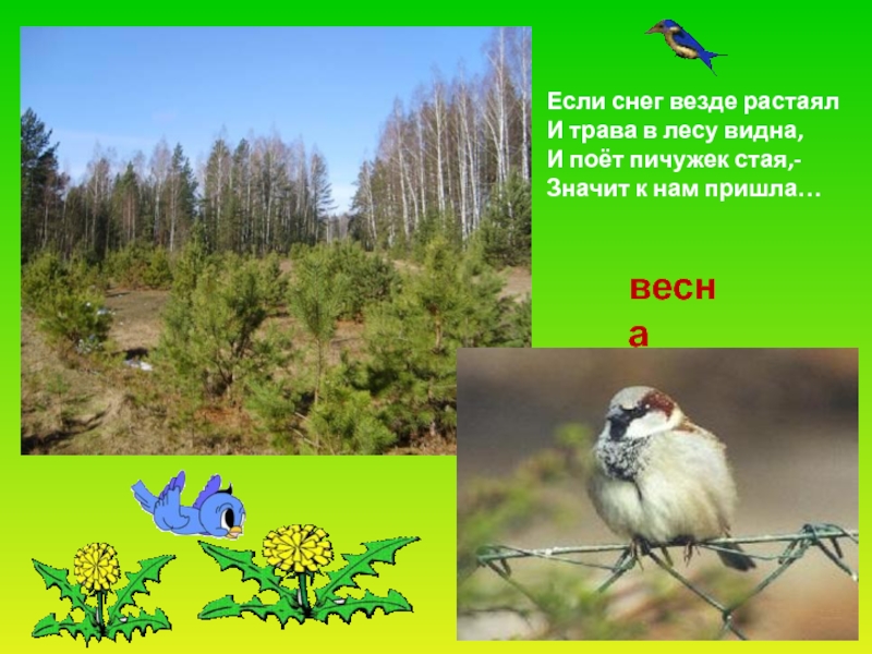 Слайд 36Ранней к нам весной летит,