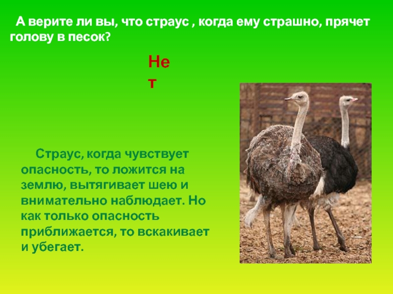 Слайд 52 А верите ли вы, что страус , когда ему страшно,