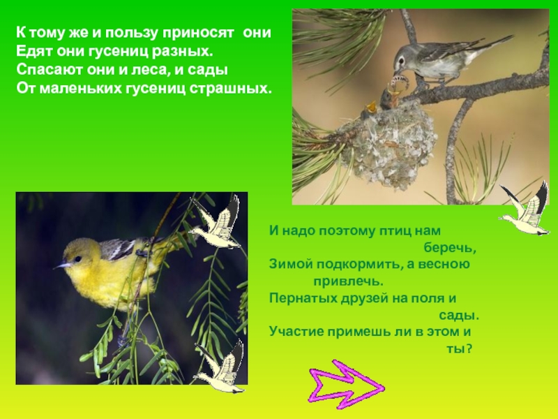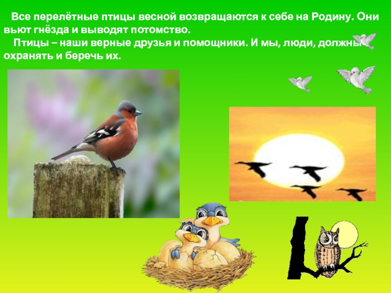 Слайд 56 Все перелётные птицы весной возвращаются к себе на Родину.