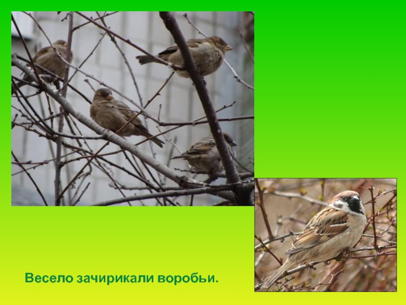 Слайд 7 Синицы запели, как будто зазвенели в серебряные