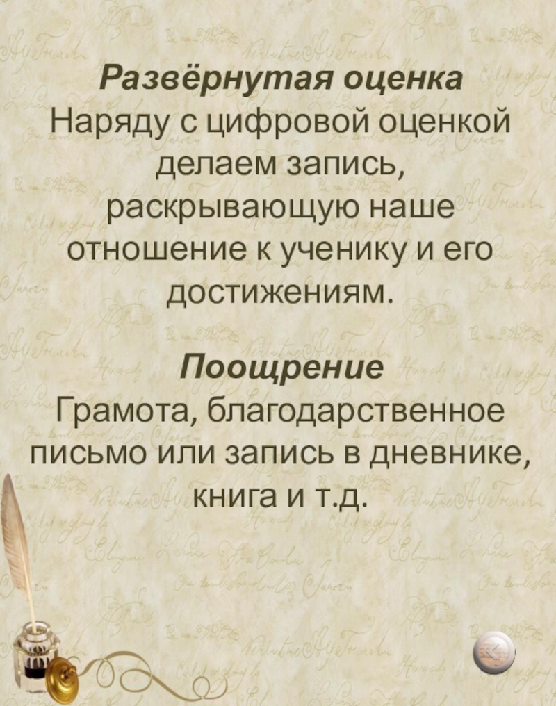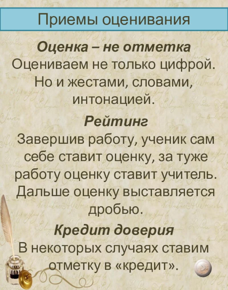 Наряду с цифровой оценкой делаем запись, раскрывающую наше отношение к