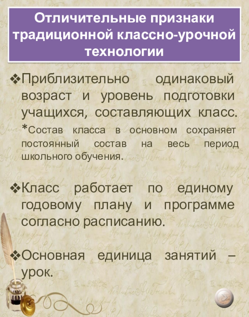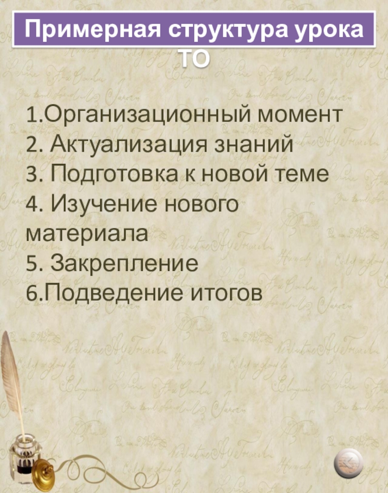 Урок – это законченный в смысловом, временном и организационном отношении отрезок времени.