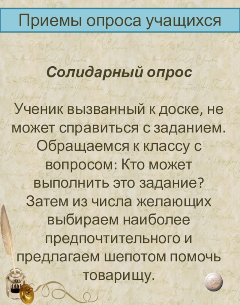 Каждого ученика спрашивают в «его время» когда он может ответить.