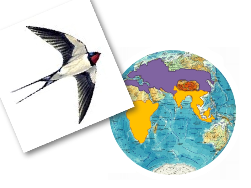 цветом изображены места, где ласточки проводят лето, а жёлтым – места, где они проводят зиму.