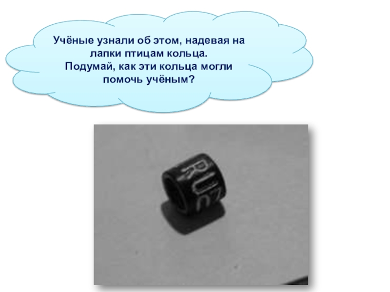 Слайд 40Учёные узнали об этом, надевая на лапки птицам кольца.