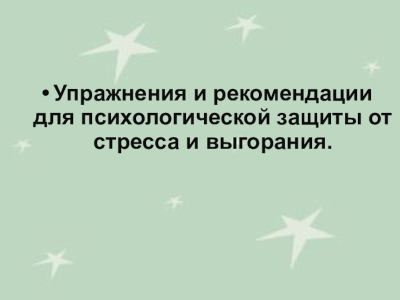 Слайд 5Упражнения и рекомендации для психологической защиты от стресса и выгорания.