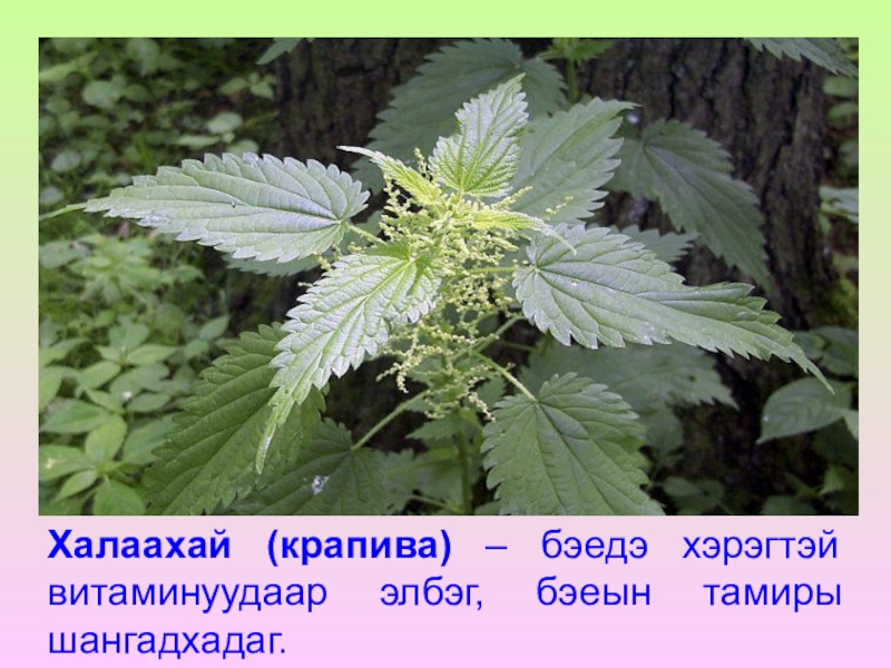 Слайд 6Халаахай (крапива) – бэедэ хэрэгтэй витаминуудаар элбэг, бэеын тамиры шангадхадаг.