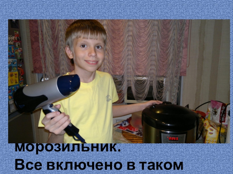 Включен компьютер, И холодильник,Включен и миксер, и морозильник.Все включено в таком количестве!Как же нам хватает электричества!?
