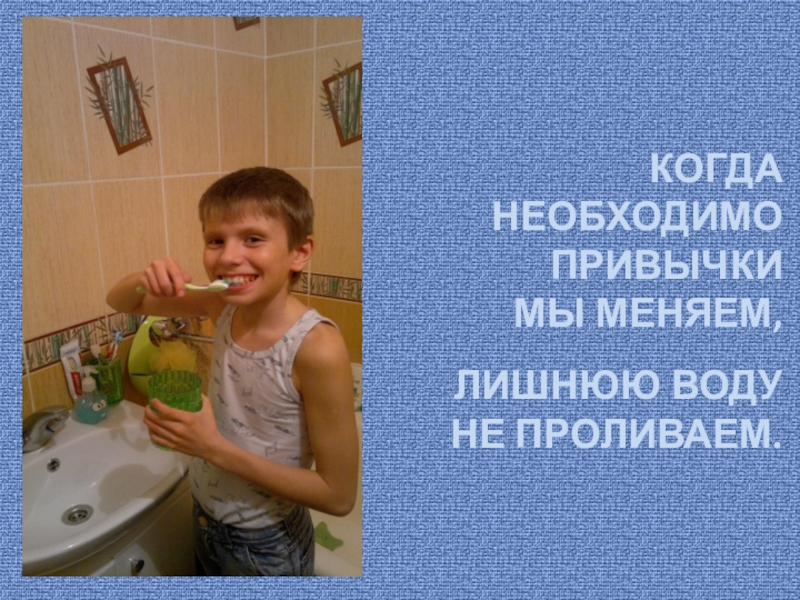 КОГДА НЕОБХОДИМОПРИВЫЧКИ МЫ МЕНЯЕМ,ЛИШНЮЮ ВОДУНЕ ПРОЛИВАЕМ.