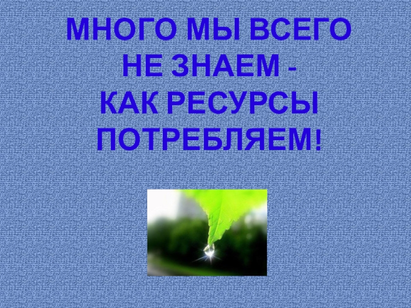МНОГО МЫ ВСЕГО НЕ ЗНАЕМ -КАК РЕСУРСЫ ПОТРЕБЛЯЕМ!