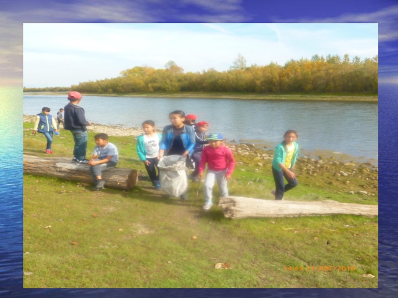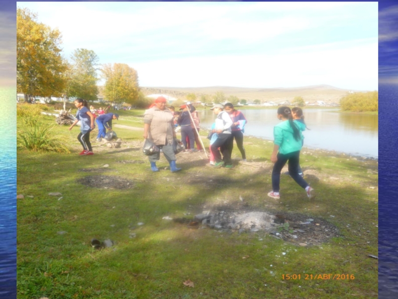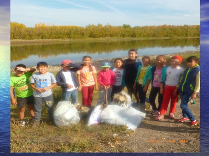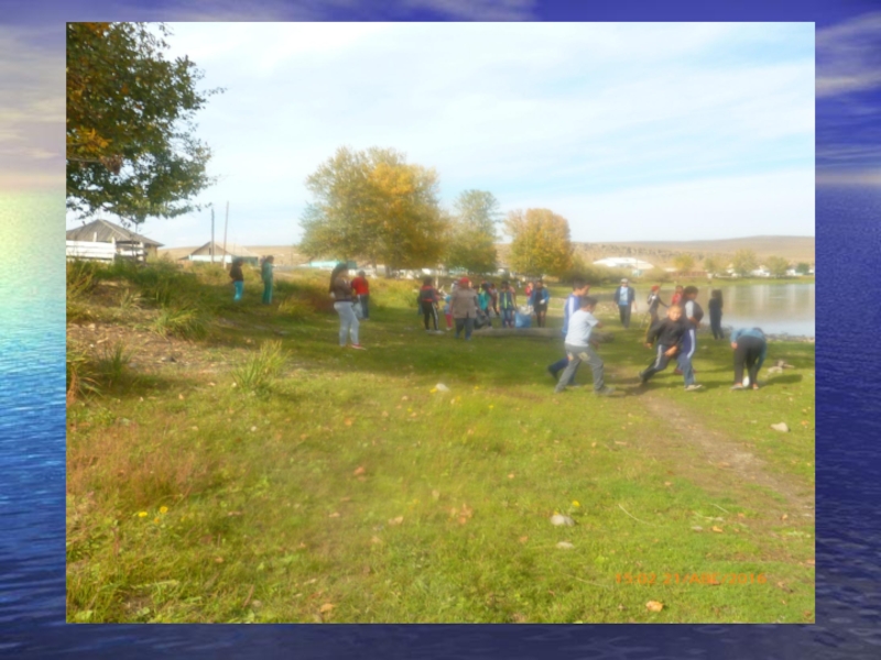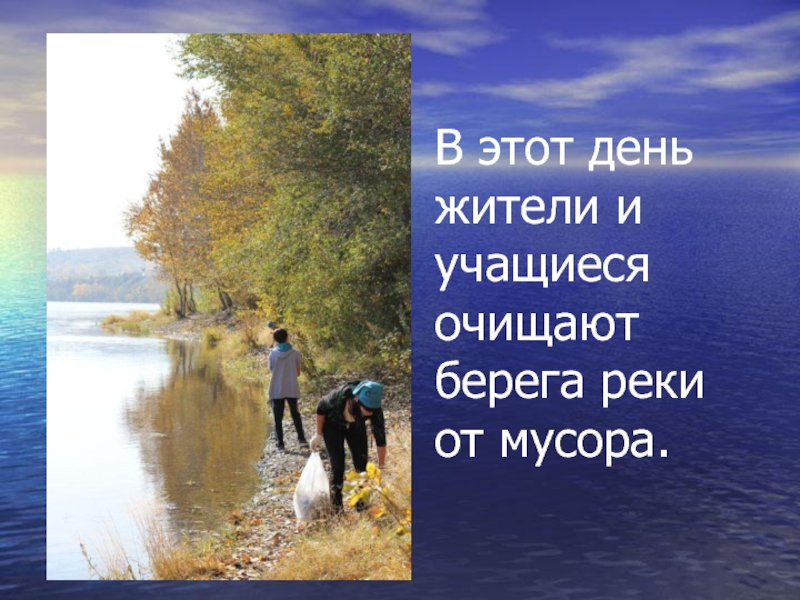Слайд 21В этот день жители и учащиеся очищают берега реки от мусора.