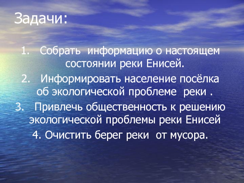 1. Собрать информацию о настоящем состоянии реки Енисей.
