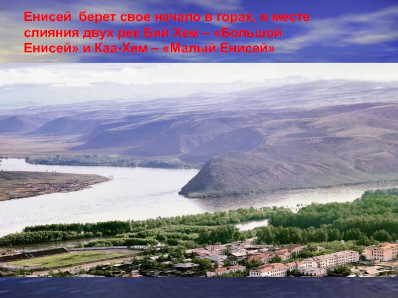 Слайд 10Енисей берет свое начало в горах, в месте слияния двух рек