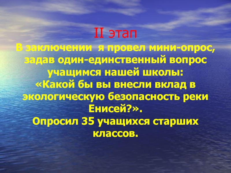 «Какой бы вы внесли вклад в экологическую безопасность реки Енисей?».