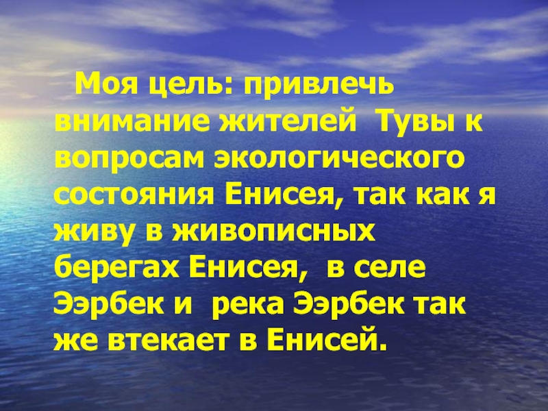 Слайд 13 Моя цель: привлечь внимание жителей Тувы к вопросам экологического