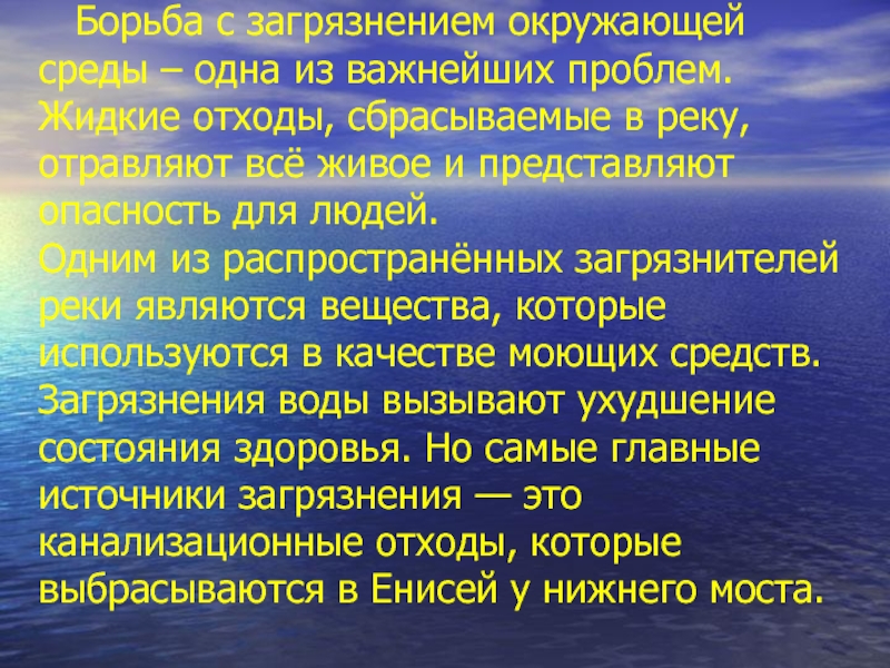 « ЭКОЛОГИЧЕСКОЕ СОСТОЯНИЕ РЕКИ ЕНИСЕЙ»