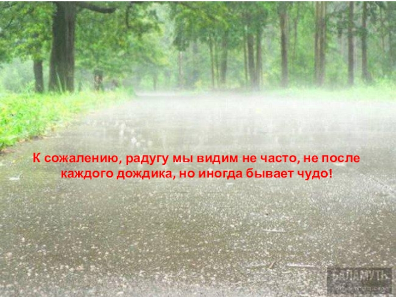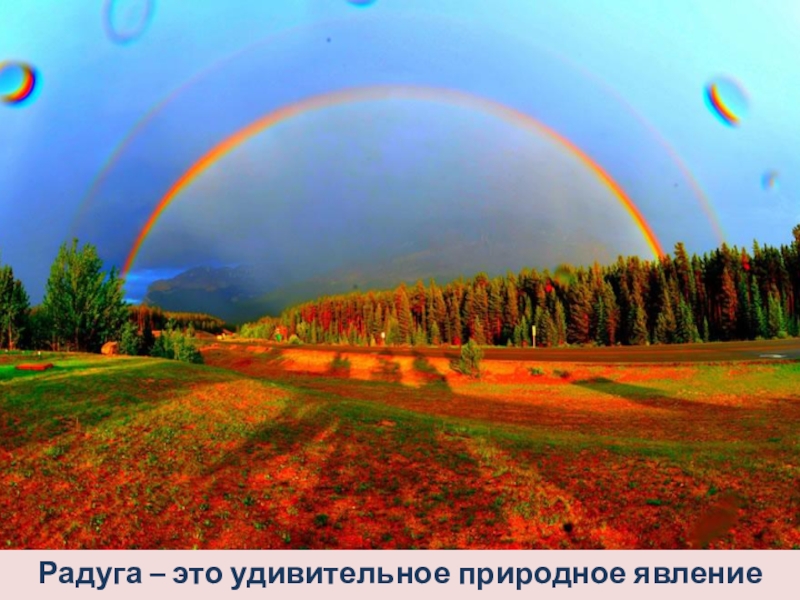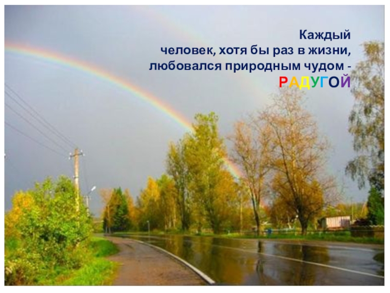 Поскольку во время дождя в воздухе находится большое количество капель, то и радуга получается в полнеба.