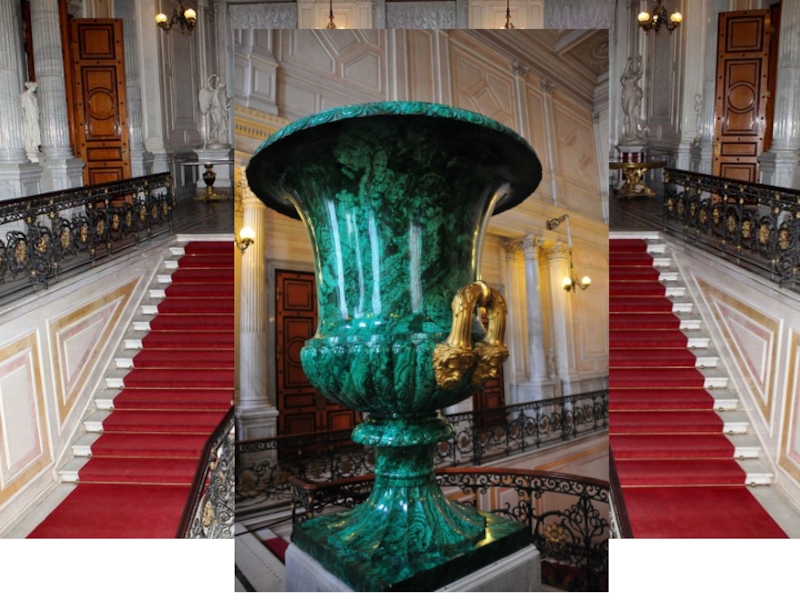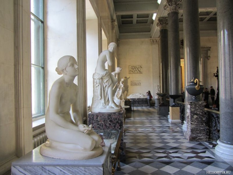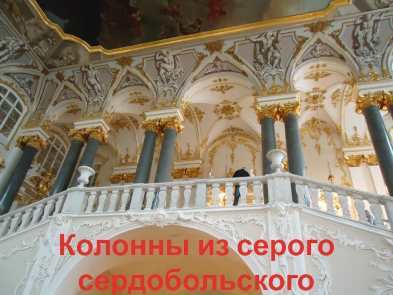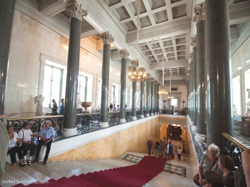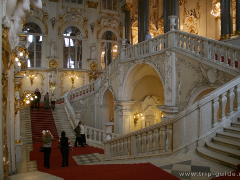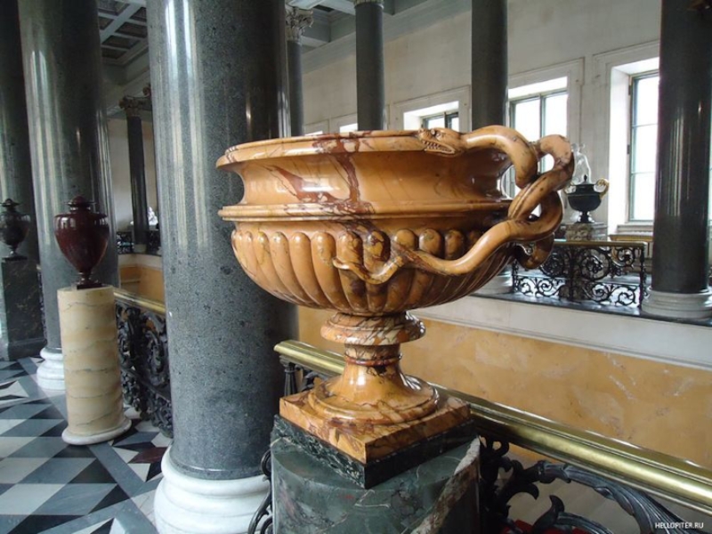 Перила лестницы Эрмитажа насыщены элементами декора из литых розеток, листьев, вставок-бобышек.