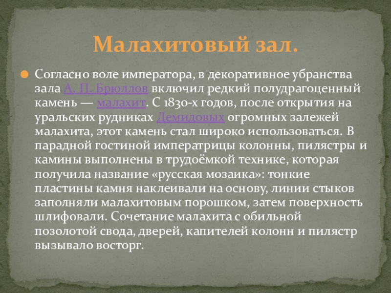 Малахитовый зал.