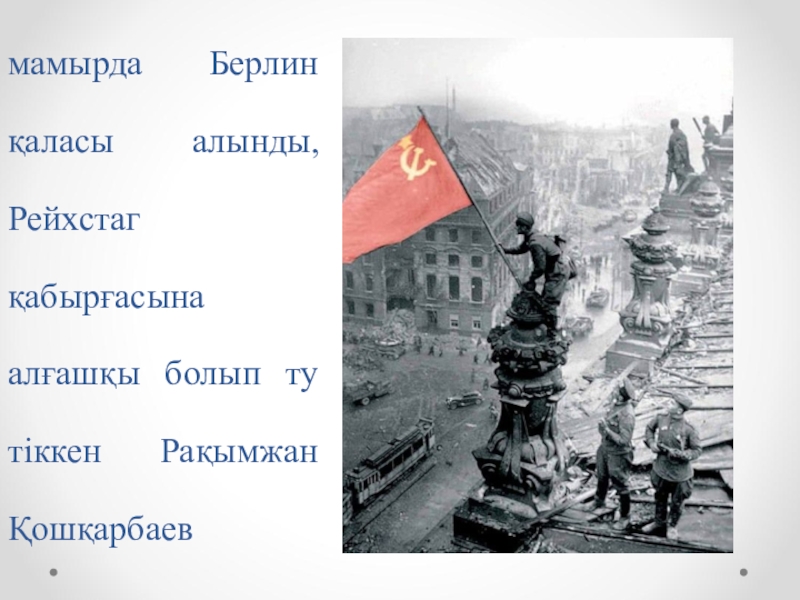 Слайд 131945 жылы 2 мамырда Берлин қаласы алынды, Рейхстаг қабырғасына алғашқы болып