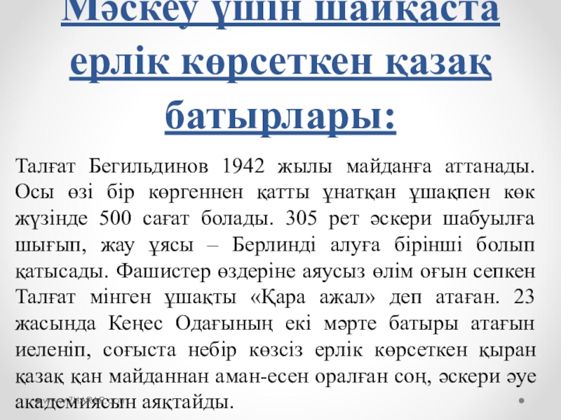 Слайд 3Қазақстандықтар Мәскеу үшін шайқаста