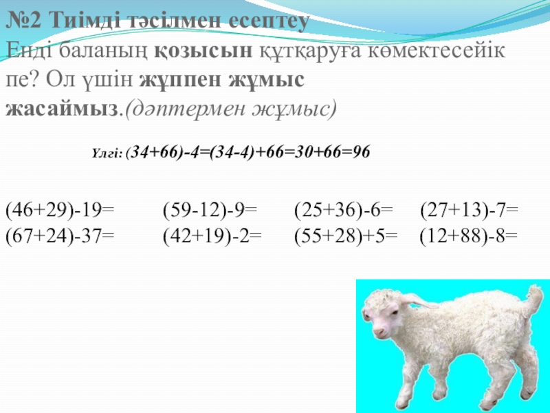 Үлгі: (34+66)-4=(34-4)+66=30+66=96